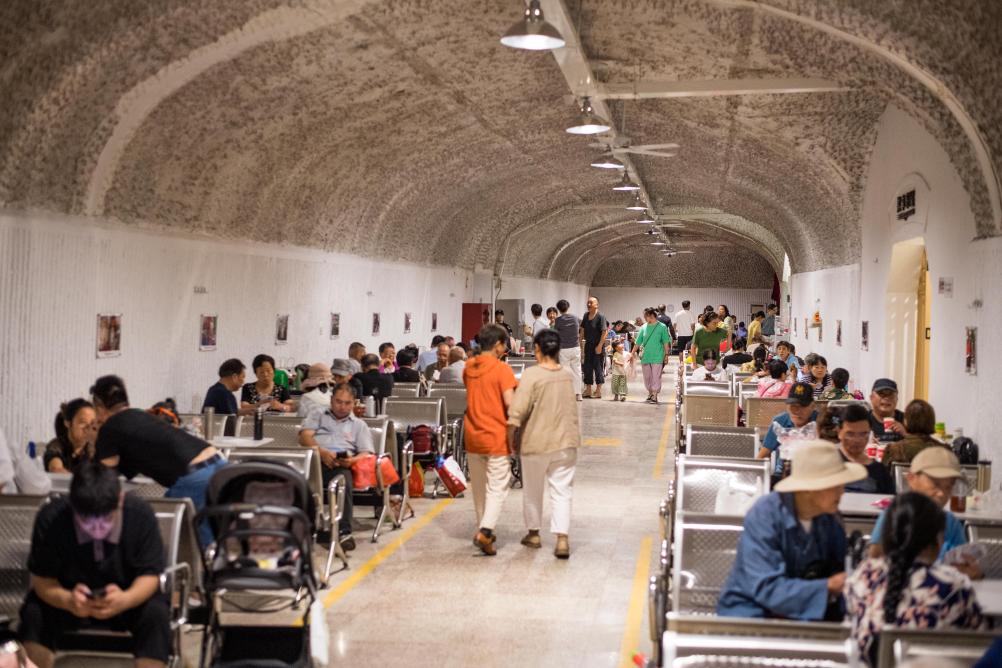 走进杭州市上城区的四牌楼避暑纳凉点,洞内的温度仅有25℃左右。这里还设置了国防教育展区、共享书屋、乒乓球运动区等多个功能区,为市民游客提供400个座位。一些老人们在下棋、聊天,孩子们在运动区打乒乓球、做游戏。