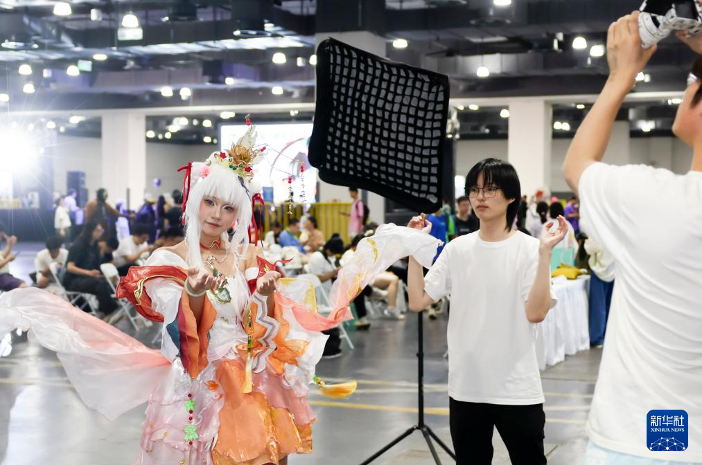 7月4日,扮装者在摄影区拍摄。2025年中国国际动漫游戏博览会(CCG EXPO 2025)于7月4日至6日在上海跨国采购会展中心举办。新华社记者 王翔 摄