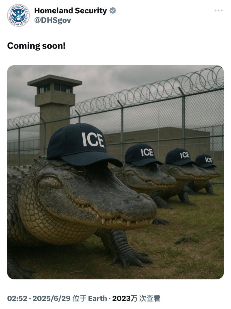 这是美国国土安全部6月29日在社交媒体上发布的帖文截图,配文“即将到来”。
