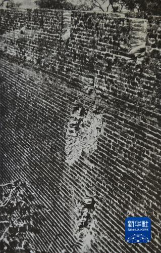 宛平城墙被日军炮击后的弹洞。