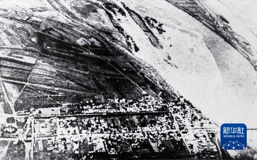 这是日军空中拍摄的卢沟桥及宛平县城图(右斜上方为永定河)。