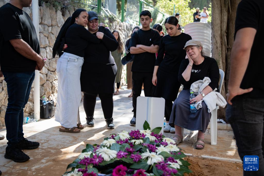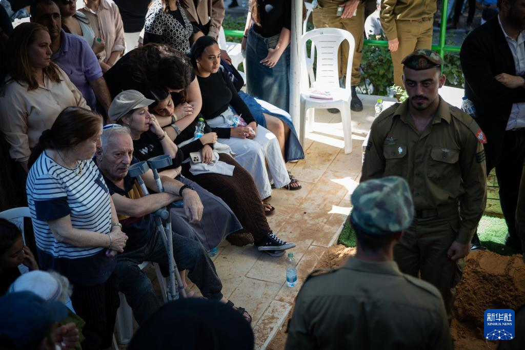 7月8日,人们在耶路撒冷赫茨尔山公墓悼念一名在加沙地带北部身亡的以色列士兵。新华社记者 陈君清 摄
