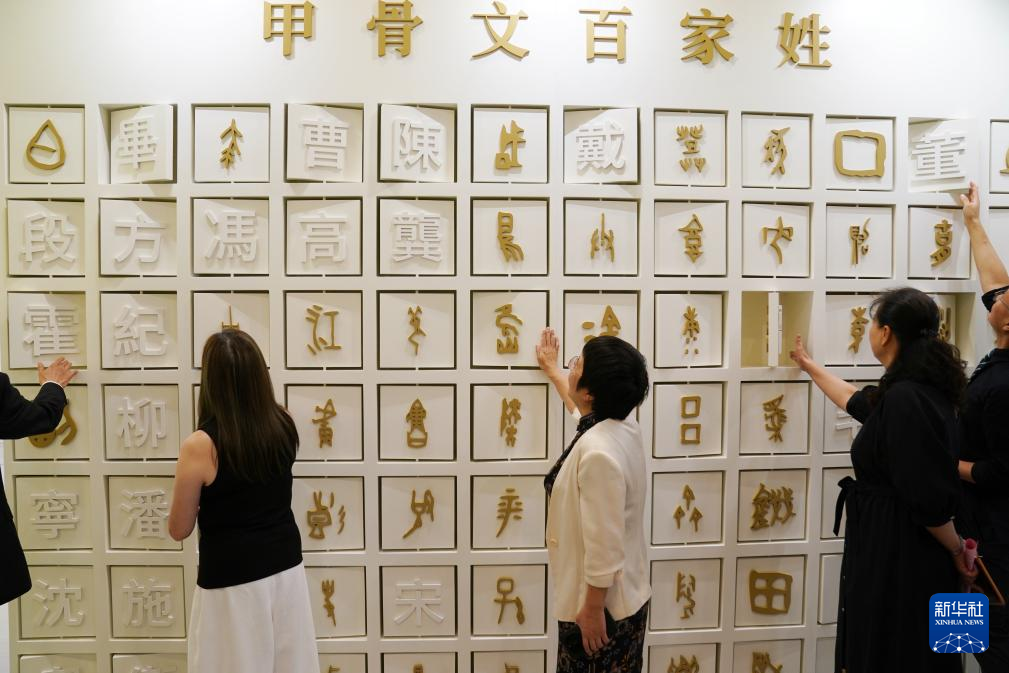 在展览现场,“甲骨文百家姓”互动体验及汉字文创等创意区域,吸引不少市民打卡体验。