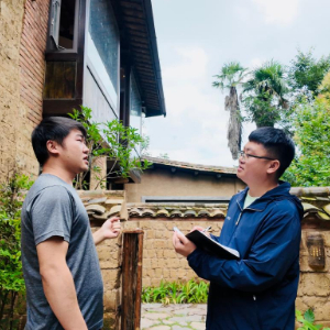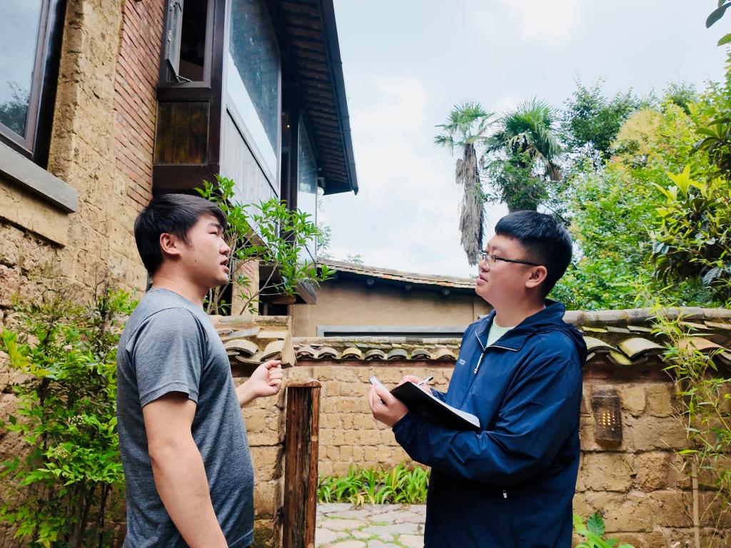 谭蒋峻(右)正在了解马过河镇民宿建设情况。新华社记者熊轩昂 摄