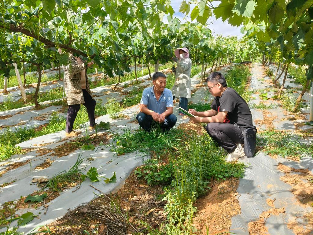 谭蒋峻(右一)和农户交流葡萄种植情况。(受访者供图)