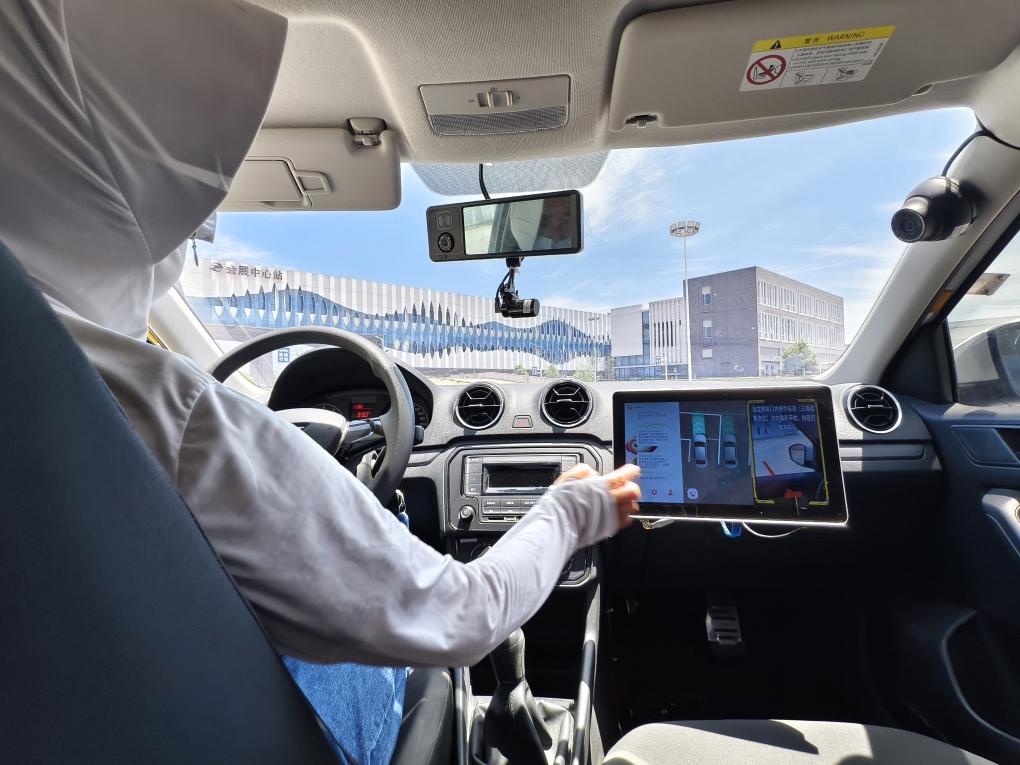 7月5日,学员独立驾驶装有AI教学系统的AI智能教练车,进行科目二练习。