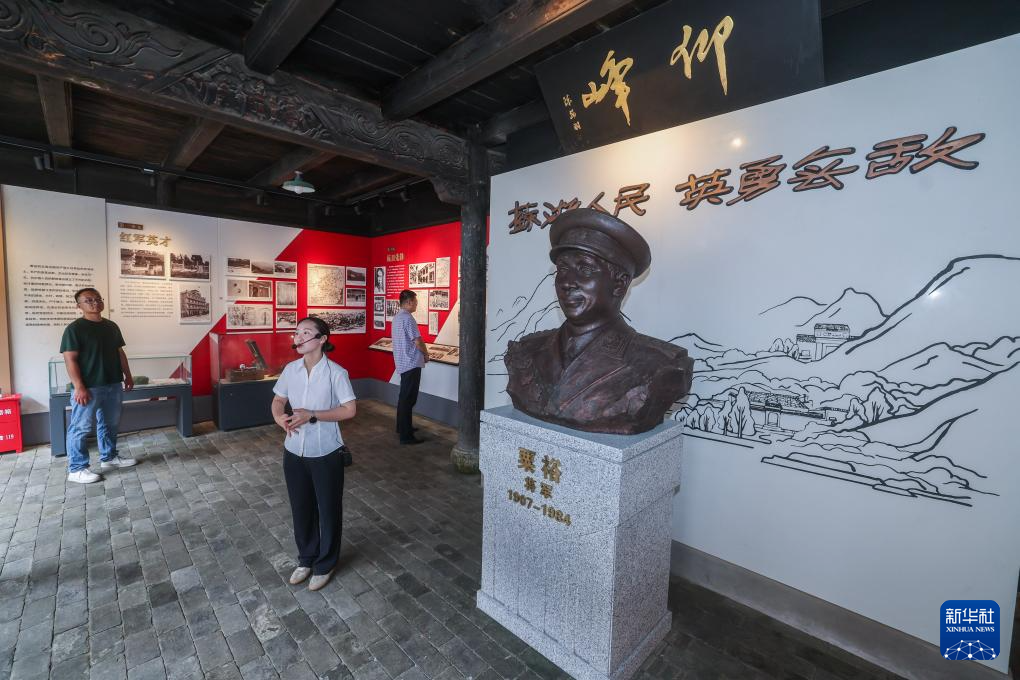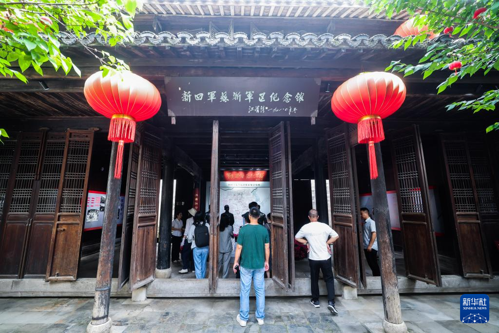 7月16日,游客在位于长兴县煤山镇的新四军苏浙军区纪念馆参观。