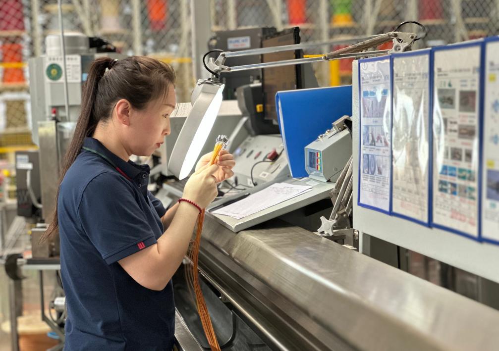 7月16日,长春天海电子有限公司员工在检查产品。新华社记者 司晓帅 摄