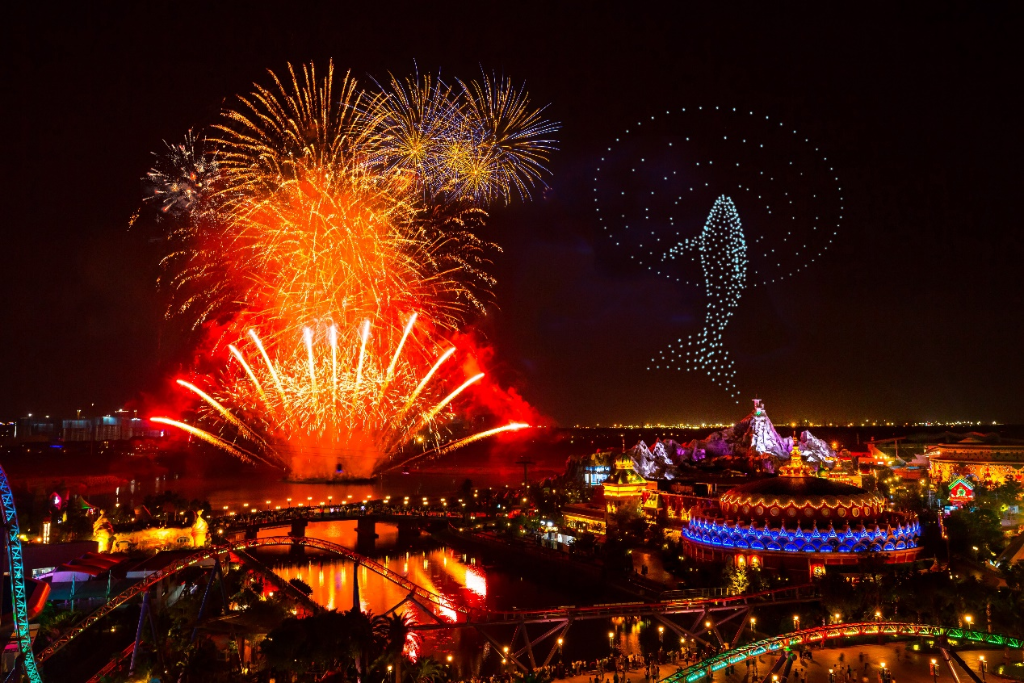 图为上海海昌海洋公园暑期夜间烟花秀。新华社发