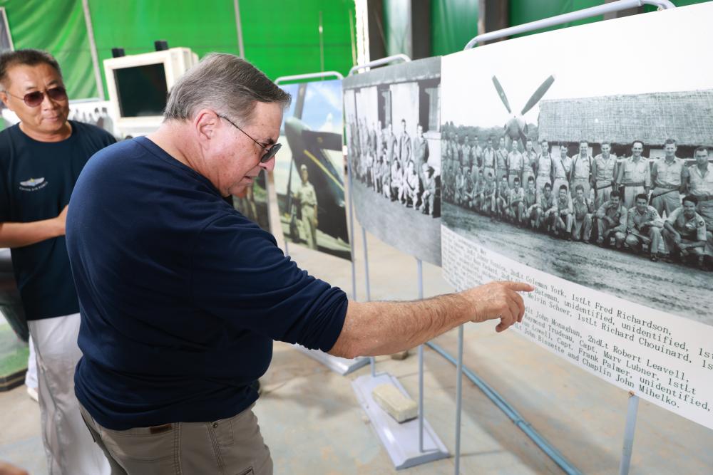 7月16日,美中航空遗产基金会主席杰夫·格林在贵州黄平旧州机场查看飞虎队资料照片。新华社记者 刘续 摄