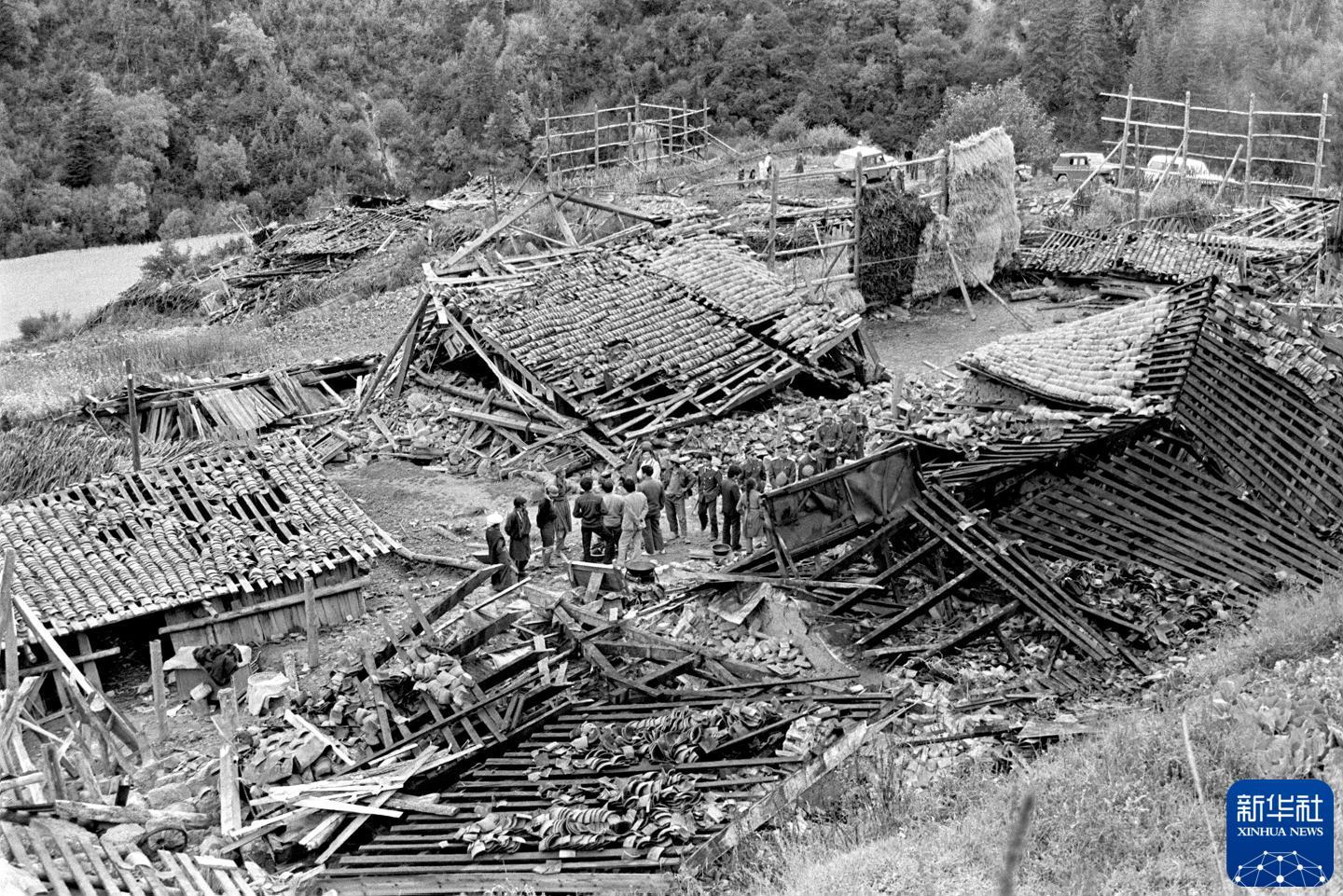 1989年9月22日10时26分,四川小金县发生6.6级地震,震中位于县城以北70余公里的两河乡,此次地震无人死亡,轻重伤员54人,但房屋等财产损失较大。图为两河乡黄草坪被震塌的住房。(1989年10月17日发)