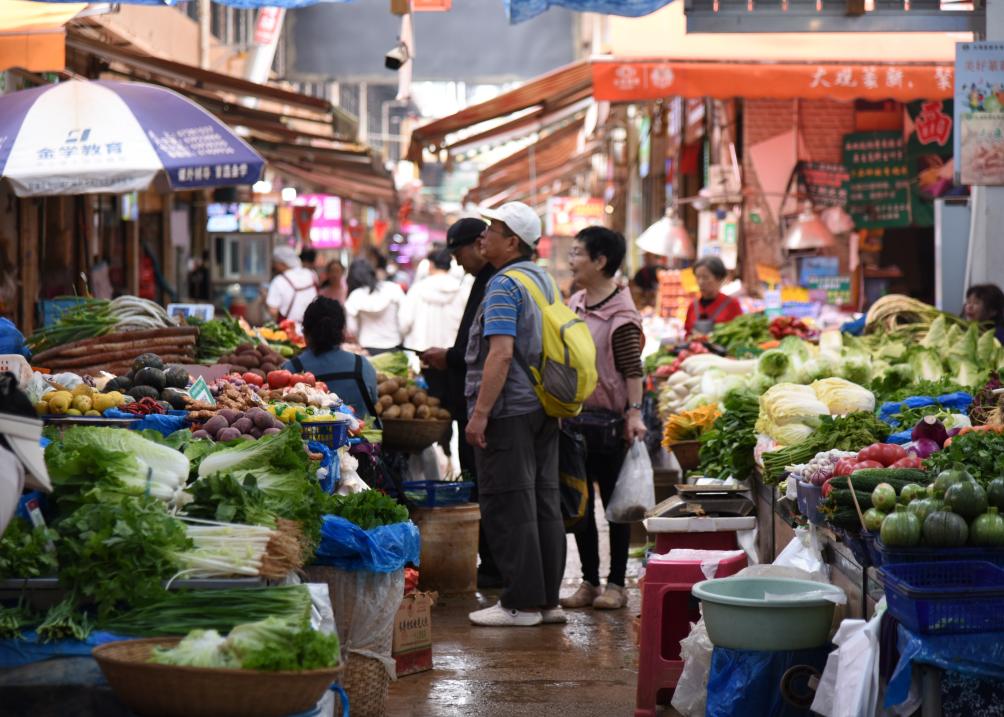 6月5日,游客在逛云南昆明大观篆新农贸市场。新华社记者王贤思 摄