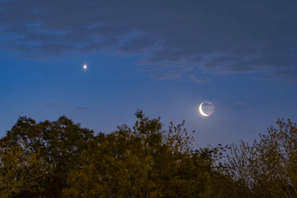 2025年4月25日,在北京亦庄拍摄的金星伴月。(马劲 摄)