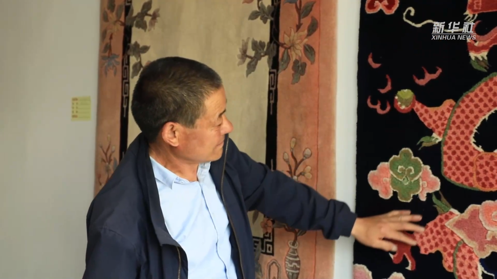 家住青海省西宁市湟中区上新庄镇加牙村的杨永良从8岁时就跟着父辈学习藏毯编织技艺,是家族第七代织毯传人。