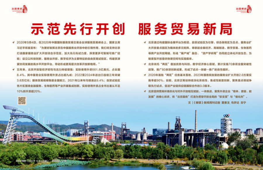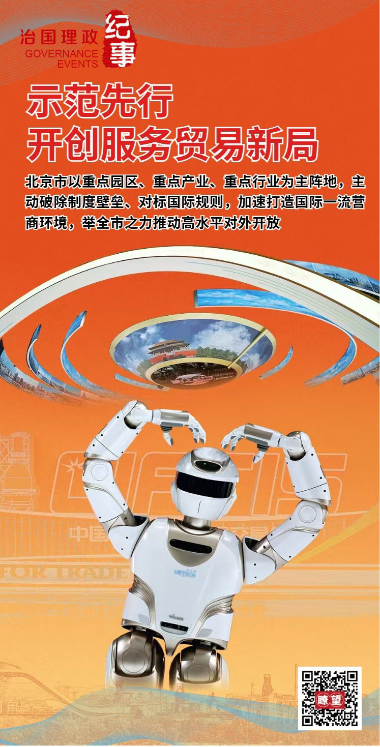 ◇2020年9月4日,在2020年中国国际服务贸易交易会全球服务贸易峰会上,国家主席习近平郑重宣布:“为更好发挥北京在中国服务业开放中的引领作用,我们将支持北京打造国家服务业扩大开放综合示范区,加大先行先试力度,探索更多可复制可推广经验;设立以科技创新、服务业开放、数字经济为主要特征的自由贸易试验区,构建京津冀协同发展的高水平开放平台,带动形成更高层次改革开放新格局。”