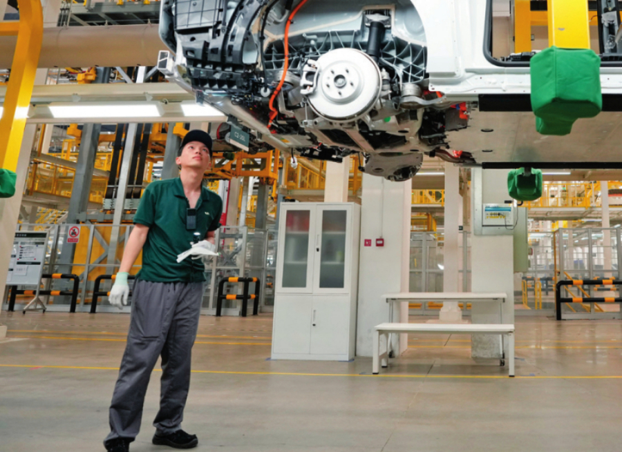 工作人员在理想汽车北京智能制造基地总装车间内工作(2025年6月18日摄)。 鞠焕宗摄/本刊