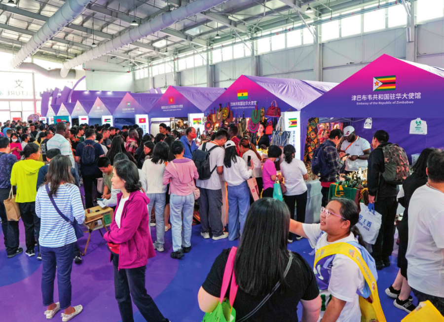 观众在服贸会首钢园区的“一带一路”共建国家特色文化展示活动上参观(2024年9月15日摄)。 陈晔华摄/本刊