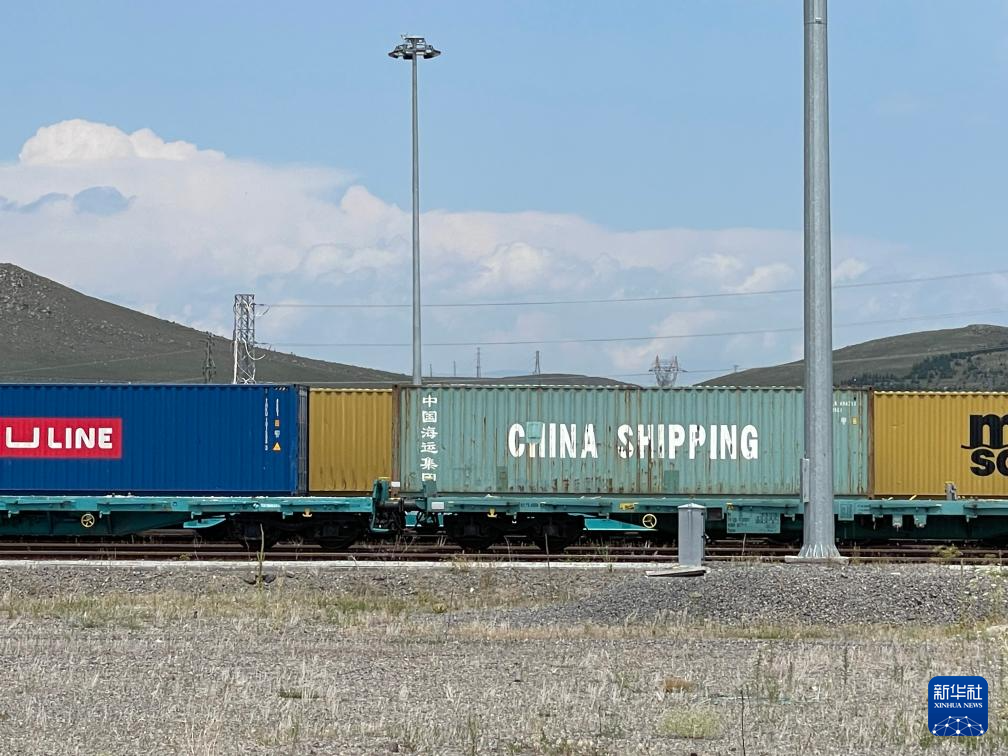 这是7月17日在土耳其东部边城卡尔斯拍摄的在卡尔斯物流中心经停的国际集装箱货运班列(手机照片)。 新华社记者 熊思浩 摄