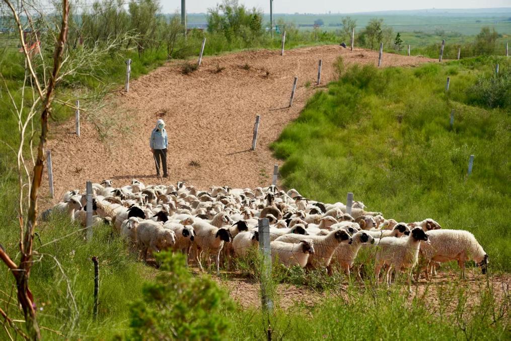 盐池县滩羊生态牧场养殖的滩羊。新华社记者张瀚暘 摄