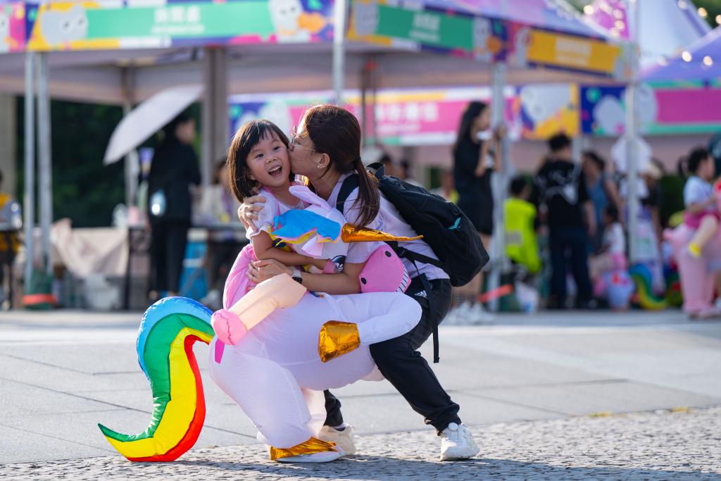 7月6日,小朋友和家长在澳门文化中心广场游玩。新华社发(张金加 摄)