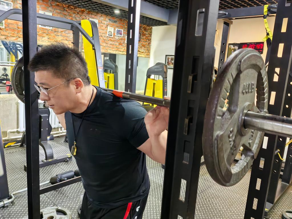 47岁的赵伟教练 正指导学员完成标准深蹲