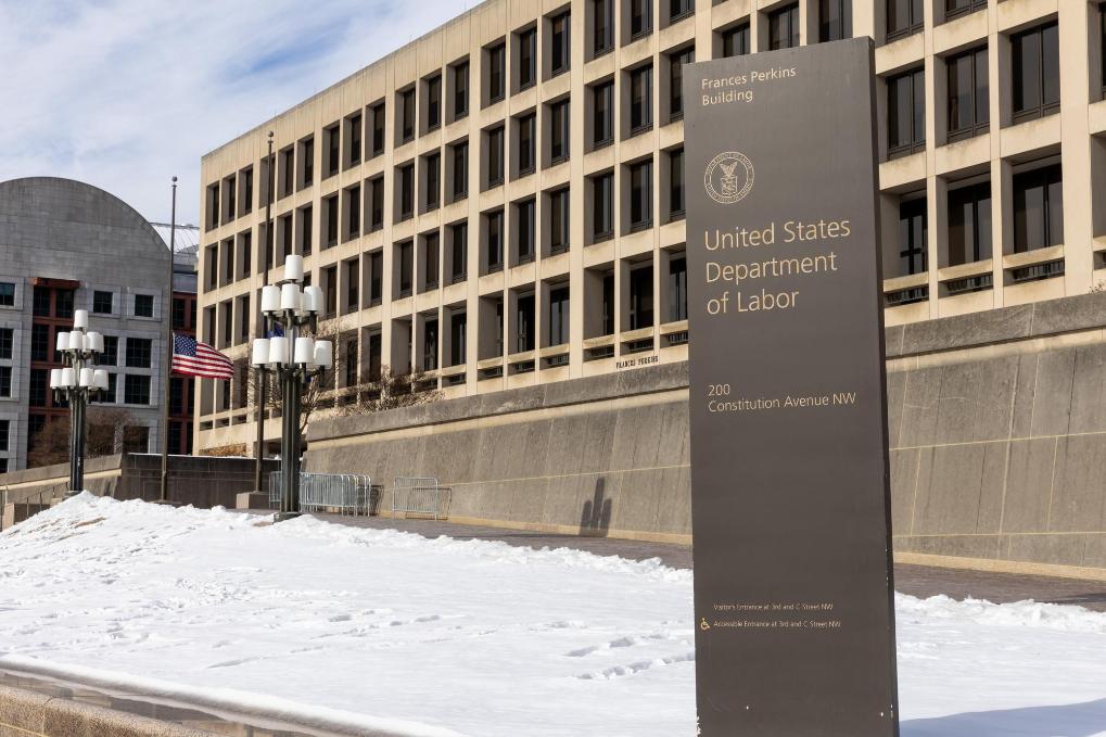 这是1月10日在美国首都华盛顿拍摄的美国劳工部大楼。新华社记者胡友松摄