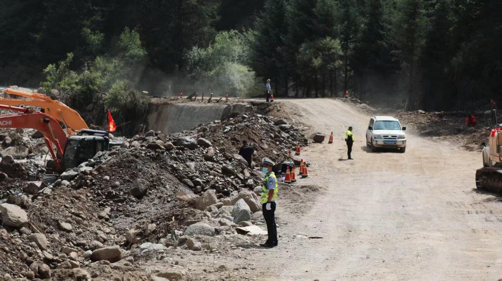 8月11日,交警在榆中县境内的省道104线上疏导交通。新华社发