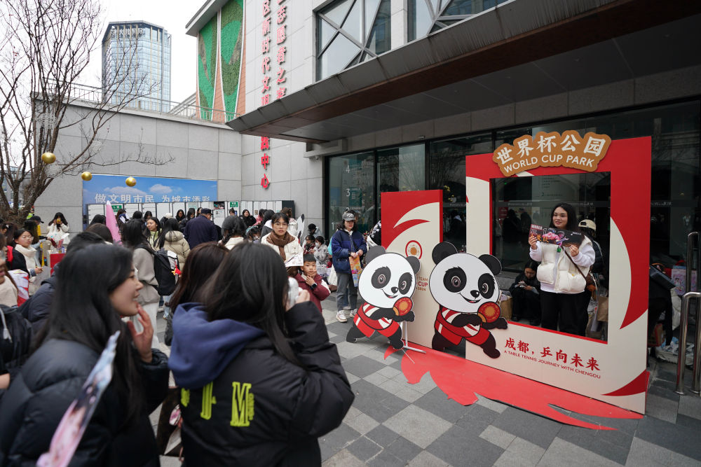 ↑2024年12月7日,球迷在成都参与2024乒乓球混合团体世界杯赛事周边活动。新华社记者 胥冰洁 摄