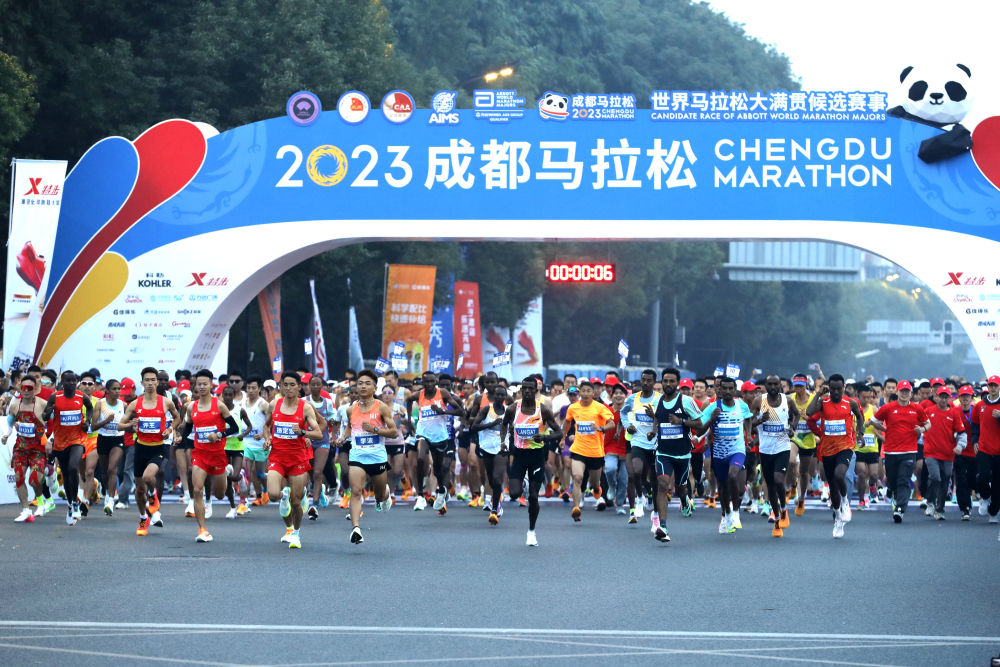 ↑2023年10月29日,成都马拉松鸣枪开跑。新华社记者 沈伯韩 摄