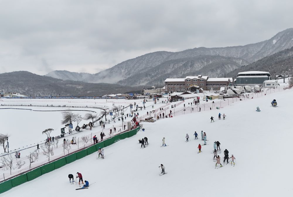 ↑1月14日,爱好者在成都西岭雪山滑雪场滑雪。新华社记者 刘坤 摄