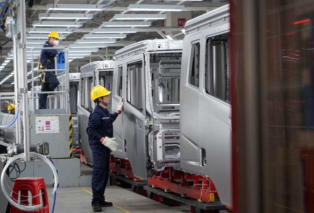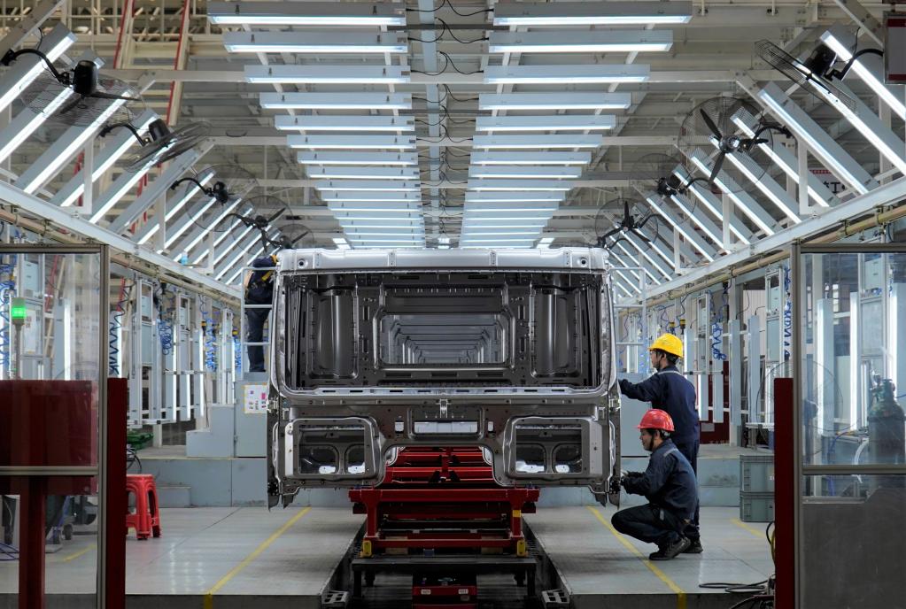 这是湖南省长沙市三一智联重卡产业园内的生产场景(4月23日摄)。新华社记者 余春生 摄