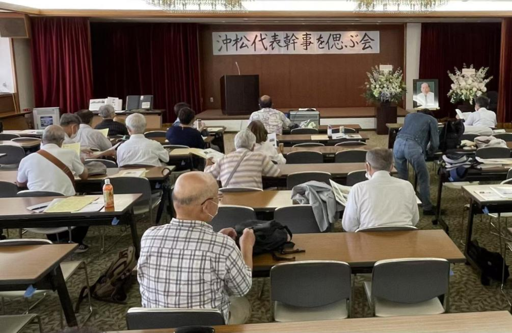 我们受邀参加了“日中友好8·15之会”为他举办的追思会。很多人上台追忆了他的一些生前往事,同时表达了要求日本政府进一步反思战争、促进中日友好的决心,还有人带来了日本被篡改的历史教科书。但坐在最后一排的我们也遗憾地看到,参会的几十人中,几乎全是白发苍苍的老者。