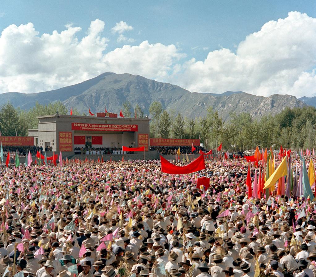 1965年9月,拉萨各界人民集会,庆祝西藏自治区成立。新华社记者袁克忠摄