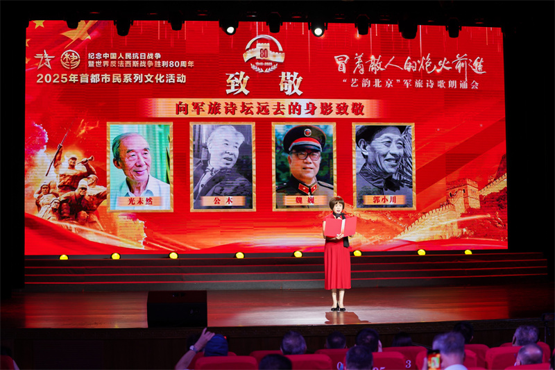 在纪念中国人民抗日战争暨世界反法西斯战争胜利八十周年的庄严日子里,一场以《冒着敌人的炮火前进》为题的军旅诗歌朗诵会,于8月20日上午在北京市丰台区文化馆剧场隆重举行,她宛如一柄青铜军号吹响,穿越岁月,携着历史回响与现实强音,在无数人的心灵深处激起滔滔浪花。这不仅是一场精心编排的艺术盛宴,更是一次穿透历史硝烟、凝聚民族魂魄的集体精神洗礼。它以其厚重的历史底蕴、鲜明的时代关注、精湛的艺术呈现和深沉的情感力量,成为首都市民纪念抗日战争胜利暨世界反法西斯战争胜利80周年系列文化活动中的一个亮点。