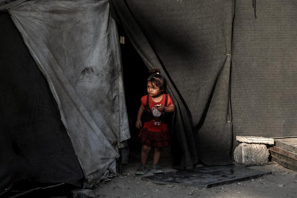 这是8月27日在加沙城西南一处避难所拍摄的巴勒斯坦儿童。新华社发(里泽克·阿卜杜勒贾瓦德摄)