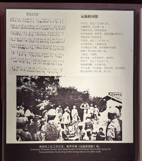 《运输救国歌》歌词,拍摄于南洋华侨机工回国抗日纪念馆。新华网记者肇蕾摄