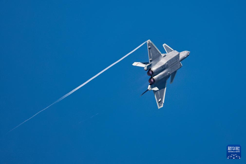 9月23日,在第十一届空军航空开放活动和长春航空展上,歼-20飞机进行四机战术对穿。新华社发(谭巳成 摄)