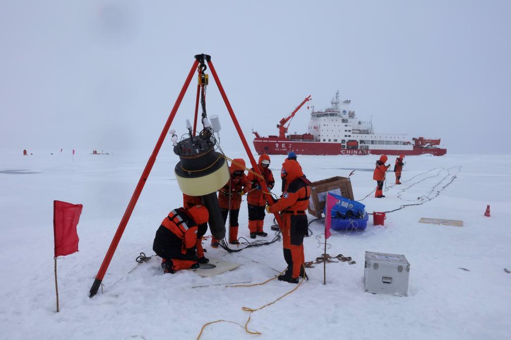 林龙山:本次科考中,考察队大规模应用无人化调查装备开展“气—冰—海”立体观测,使用无人机搭载气象传感器、AUV搭载多波束声呐、海/冰界面布放生态无人冰站与冰基浮标,获取了大量多圈层协同观测数据,极大地提高了多圈层协同观测能力和效率。
