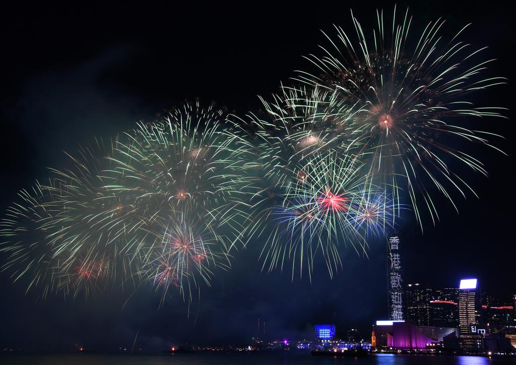 新华社香港10月1日电 题:璀璨烟花耀香江庆新中国76周年华诞
