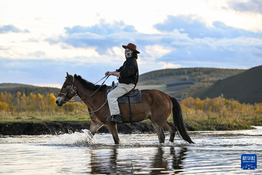 9月17日,在内蒙古呼伦贝尔市额尔古纳市恩和俄罗斯族民族乡恩和村,游客体验骑马。