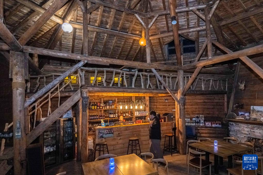 这是9月17日在内蒙古呼伦贝尔市额尔古纳市恩和俄罗斯族民族乡恩和村拍摄的木刻楞酒吧的内景。