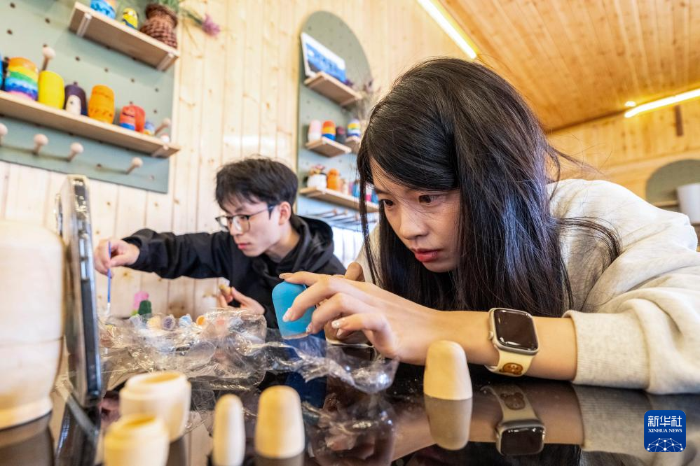 9月17日,在内蒙古呼伦贝尔市额尔古纳市恩和俄罗斯族民族乡恩和村,游客们体验绘制套娃。