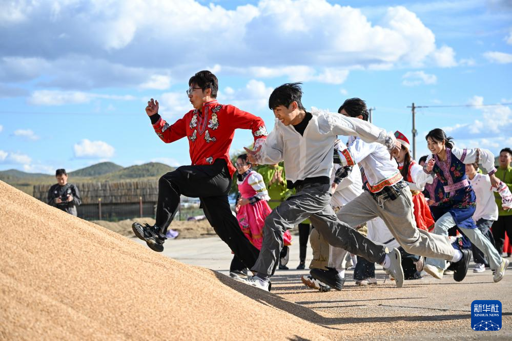 9月15日,在内蒙古呼伦贝尔市额尔古纳市恩和俄罗斯族民族乡,学生们参加丰收节活动。