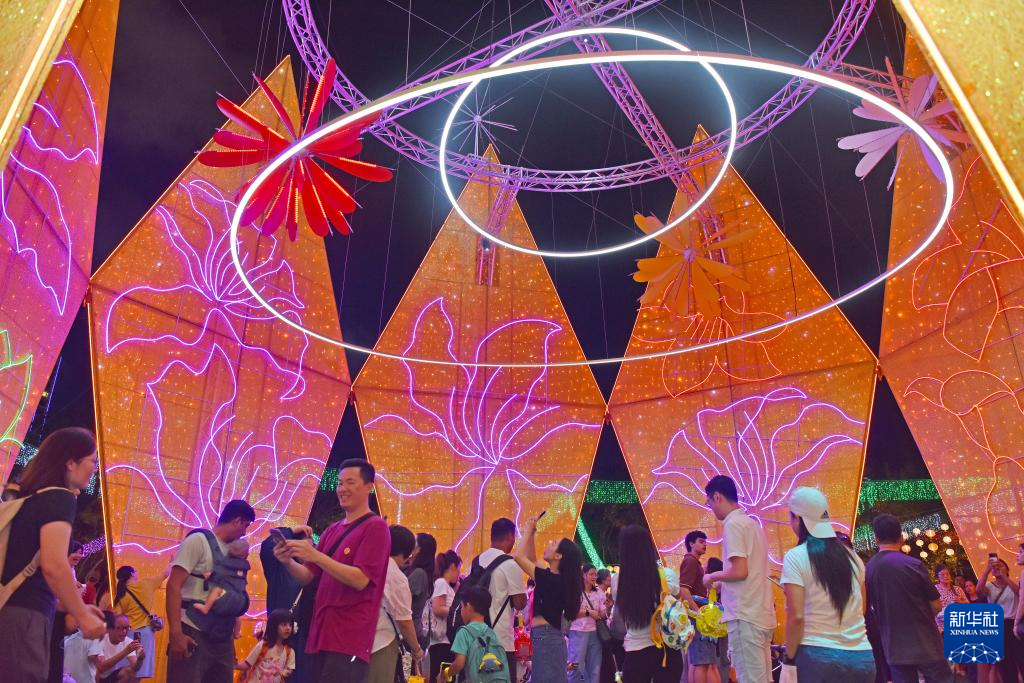 10月6日,市民在香港维多利亚公园欣赏中秋彩灯。新华社记者 陈铎 摄