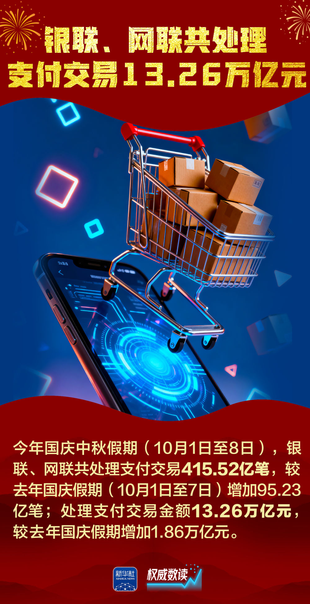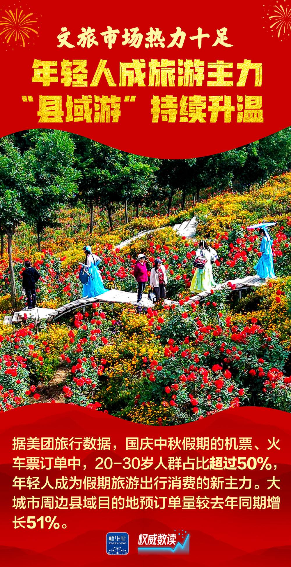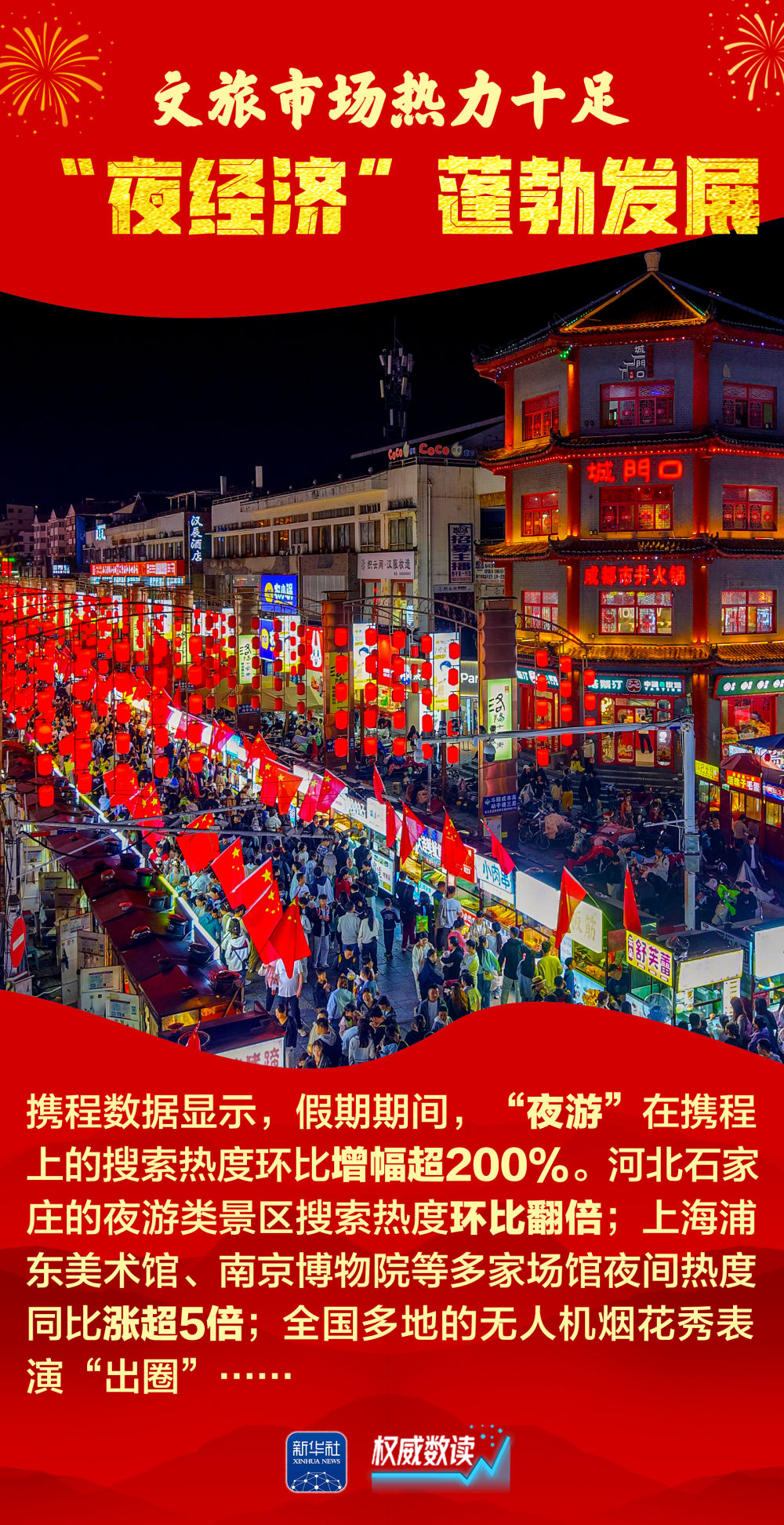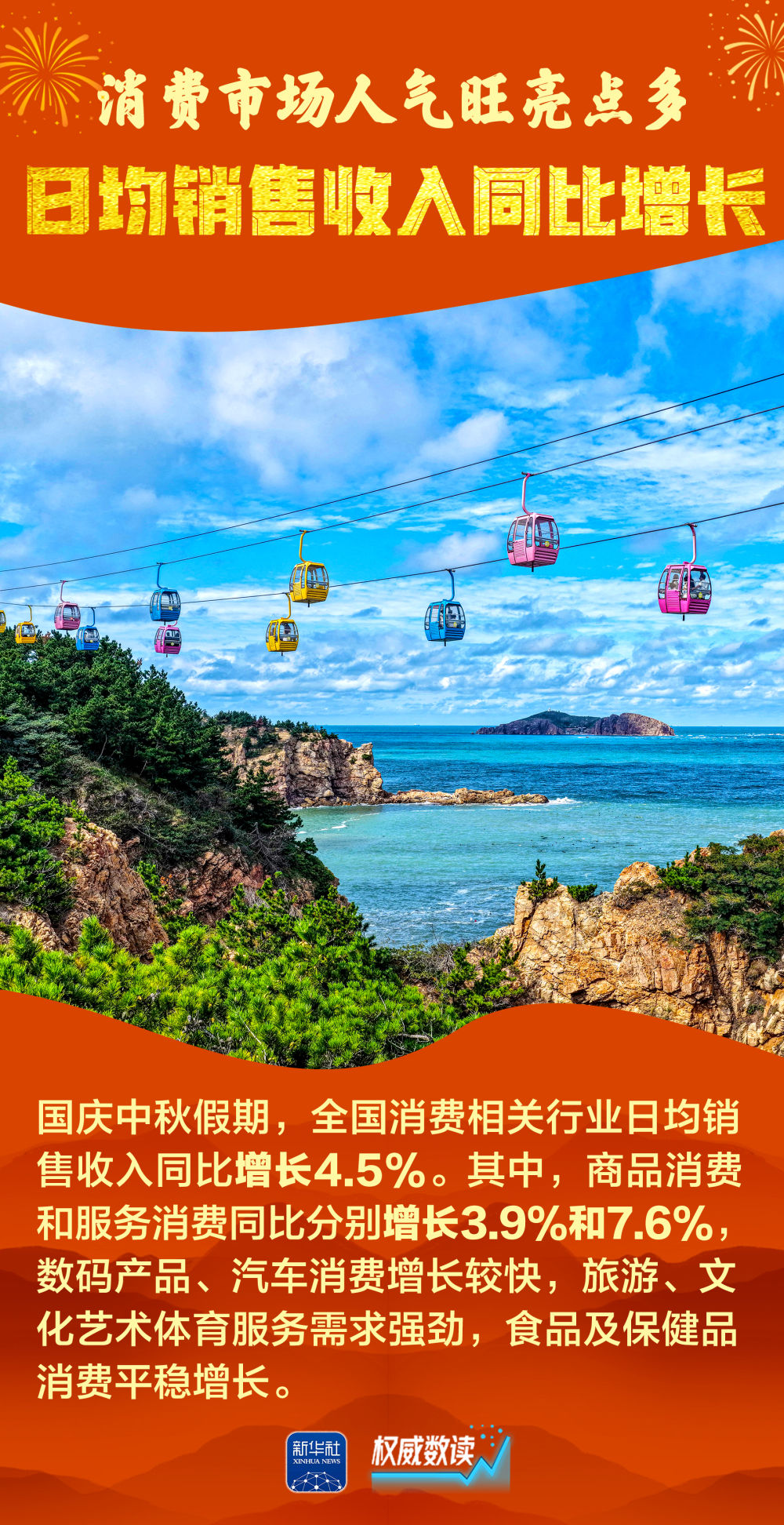 2025年国庆叠加中秋、家国同庆,交通出行、文化旅游、消费市场等都呈现火热场景。每一组跃动的数据,展示经济的奔腾活力;每一个热闹的场景,彰显发展的蓬勃生机。让我们跟随海报,一起感受这个火热奔腾、祥和喜庆的国庆中秋长假。