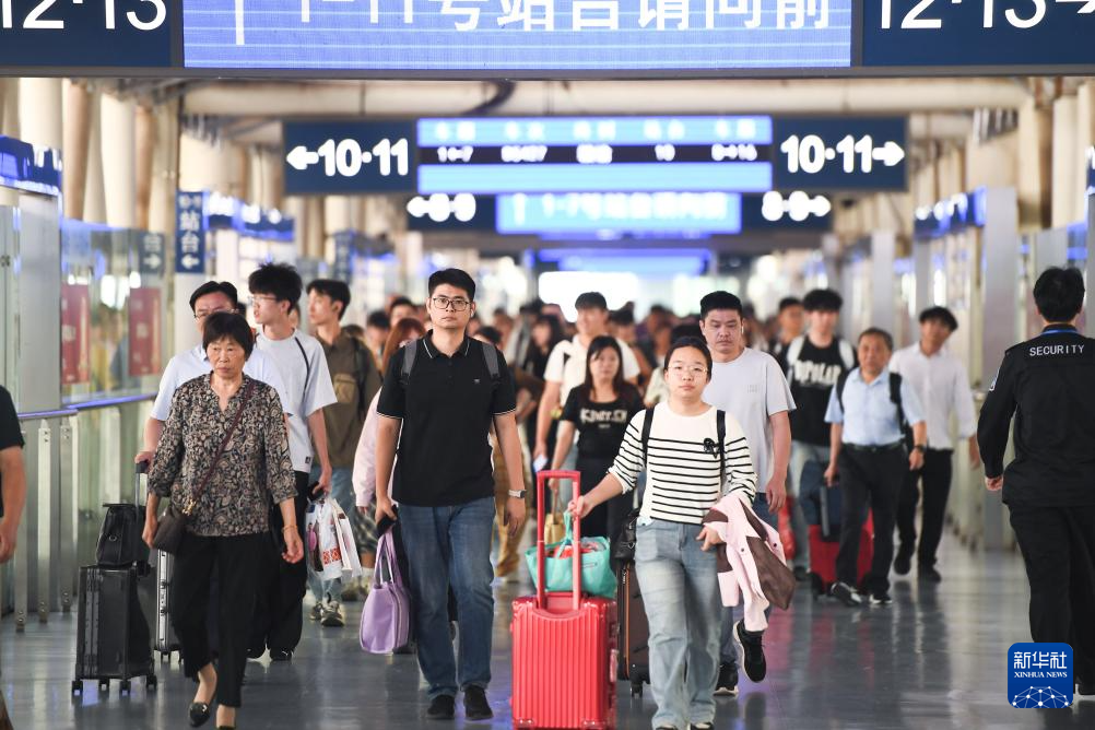 10月7日,旅客从南京火车站出行。新华社发(杨素平 摄)