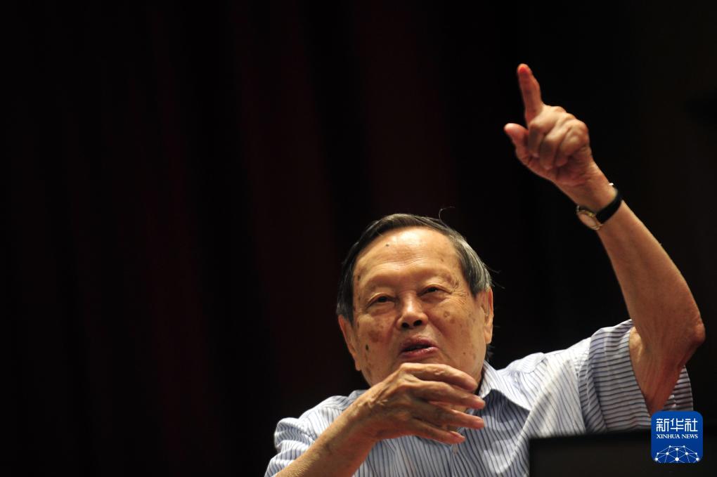 2014年6月25日,杨振宁在新加坡南洋理工大学作题为《我的学习与研究经历》的主题演讲。新华社发(邓智炜摄)