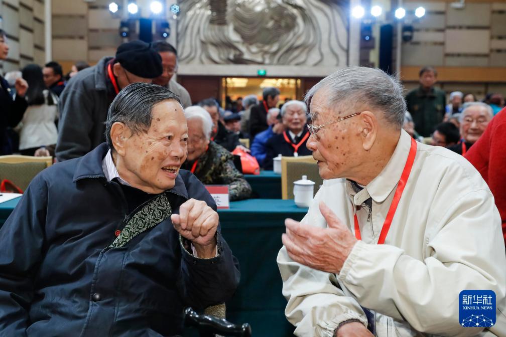 2017年11月1日,西南联合大学建校80周年纪念大会在北京大学举行,杨振宁(左)与西南联大校友吴大昌交流。新华社记者 沈伯韩 摄