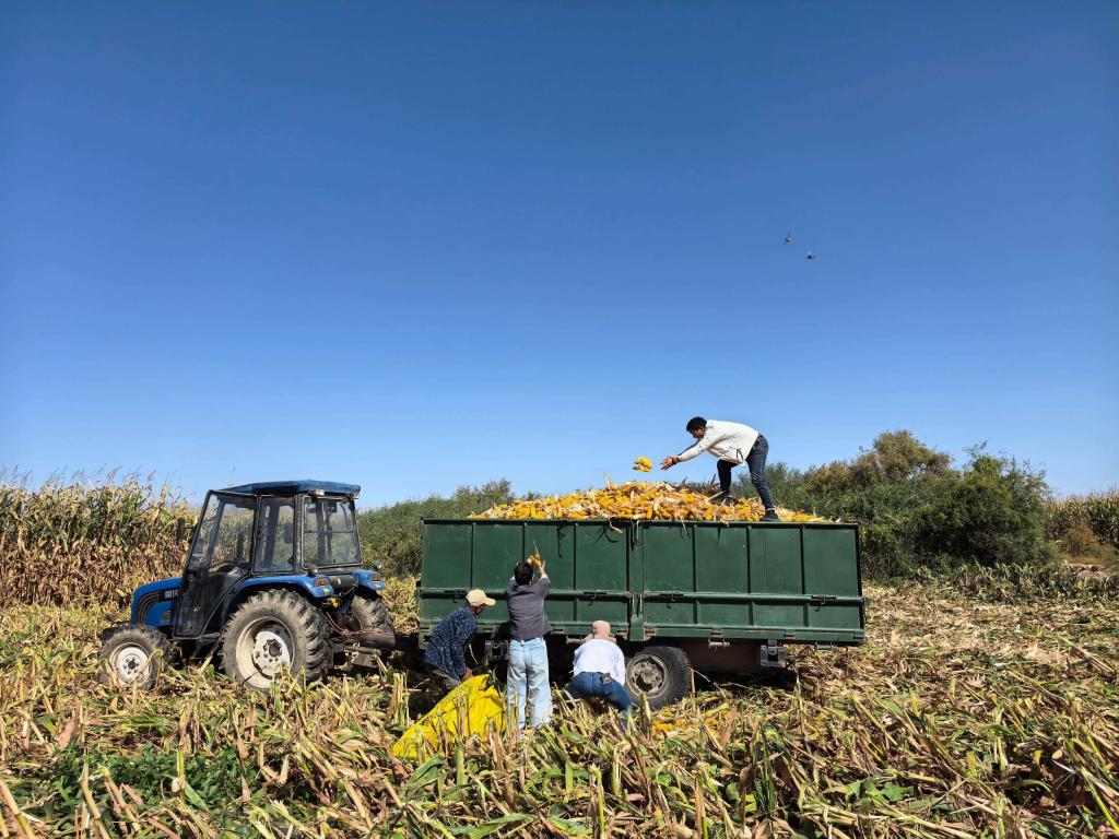 内蒙古巴彦淖尔市种植户收获玉米。新华社记者李云平 摄