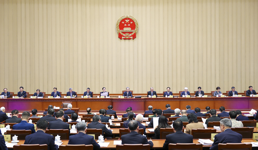 10月24日下午,十四届全国人大常委会第十八次会议在北京人民大会堂举行第二次全体会议。赵乐际委员长主持。新华社记者 刘彬 摄